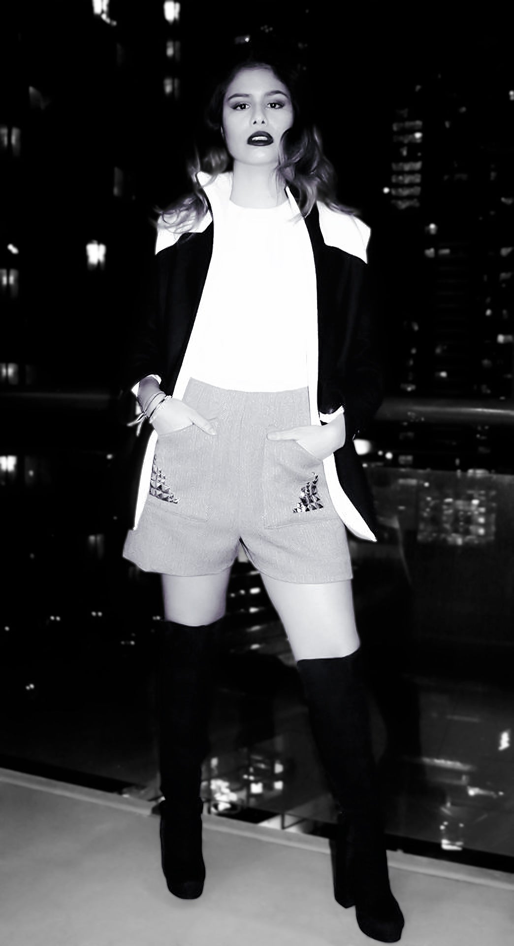 Masculine and feminine energies unite to create a powerful look. She is a strong willed woman who is independent and free. She expresses her originality by creating her own style.